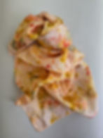 This 100% silk crepe de chine silk accessory with a hand rolled hem is dyed with red onion skins, marigolds, madder, cutch, tea leaves, iron, and weld. Please take note that silk crepe is sheer and has a subtle sheen. Actual colors may vary slightly in person. Due to its handmade nature, there may be imperfect patterns or marks on the textile making every piece uniquely beautiful. This piece has been prewashed. Visit the FAQ page to learn more about natural dyes and textiles. Naturally dyed in San Diego, California.